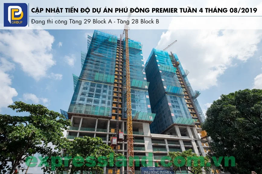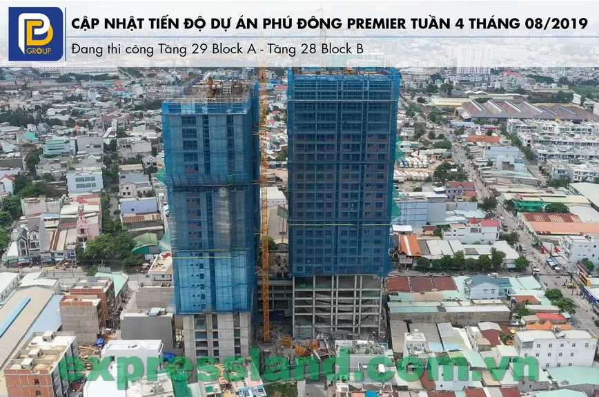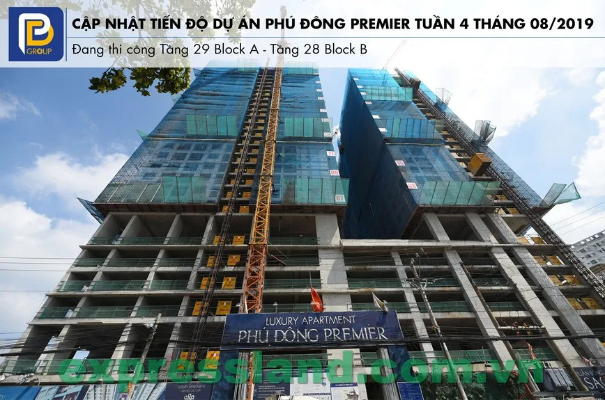 Cập nhật tiến độ dự án Phú Đông Premier tháng 08/2019